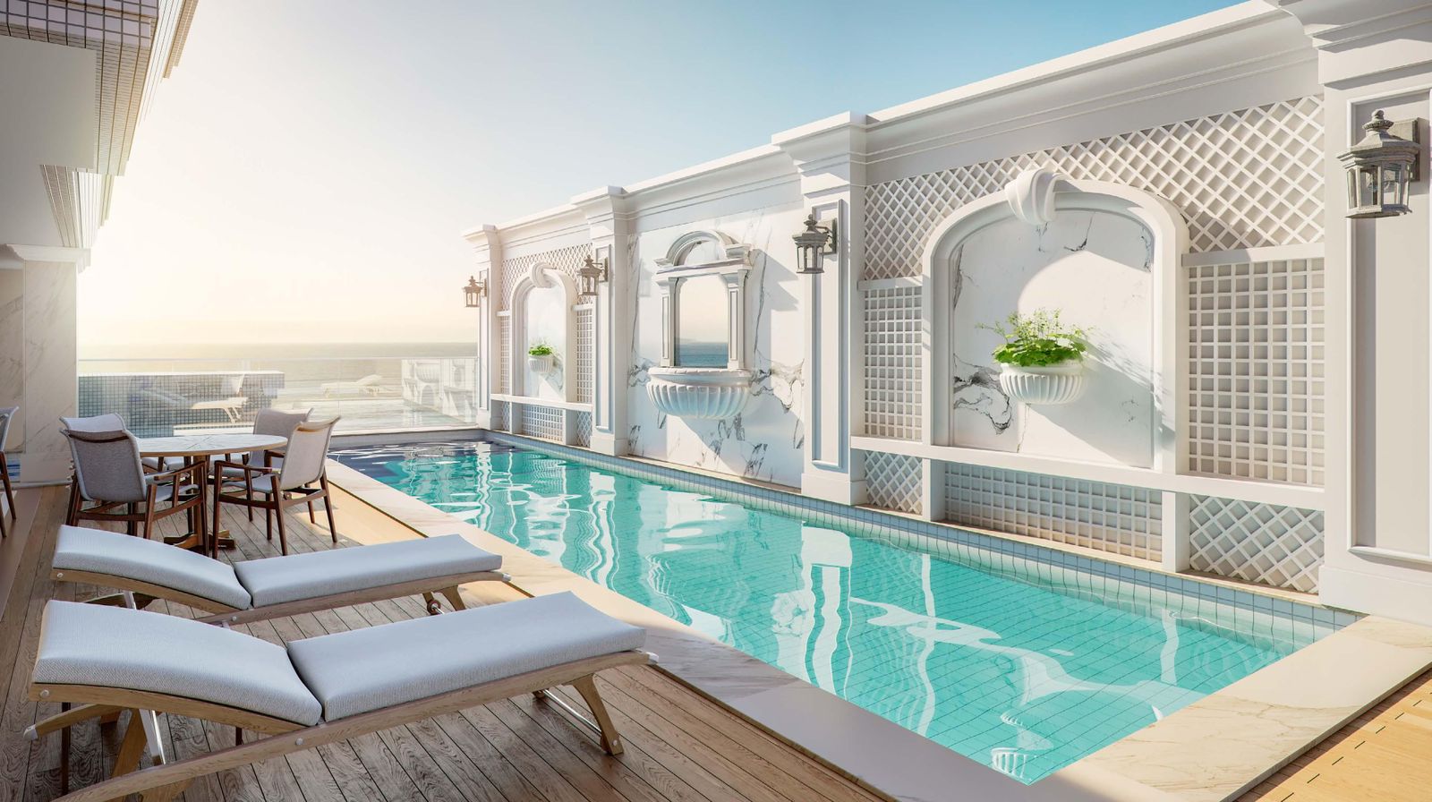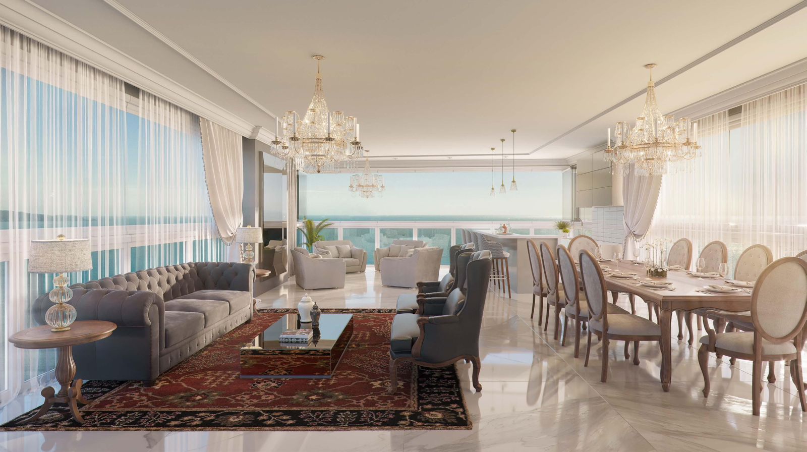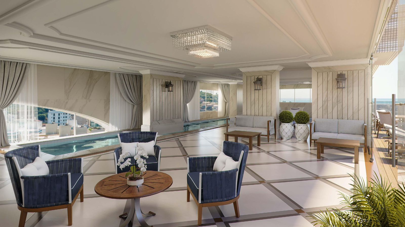 Com apenas um apartamento por andar, o empreendimento combina arquitetura neoclássica, acabamentos de altíssimo padrão e uma área de lazer digna dos empreendimentos mais sofisticados do litoral.